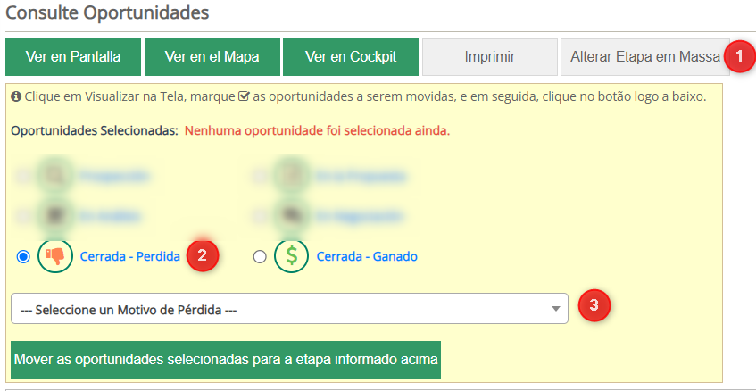 Solo es posible marcar oportunidades después de realizar el filtro y hacer clic en el botón Ver en pantalla.
