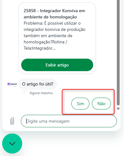 7. Si el artículo fue útil, es decir, resolvió su duda, haga clic en Sí. En este caso, su solicitud no será enviada al Soporte Konviva:
