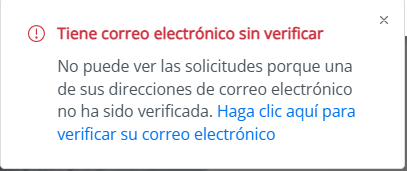 Si no realiza la confirmación de su correo electrónico, al intentar acceder a sus tickets en la Plataforma de Atención Zendesk, se mostrará el siguiente mensaje: