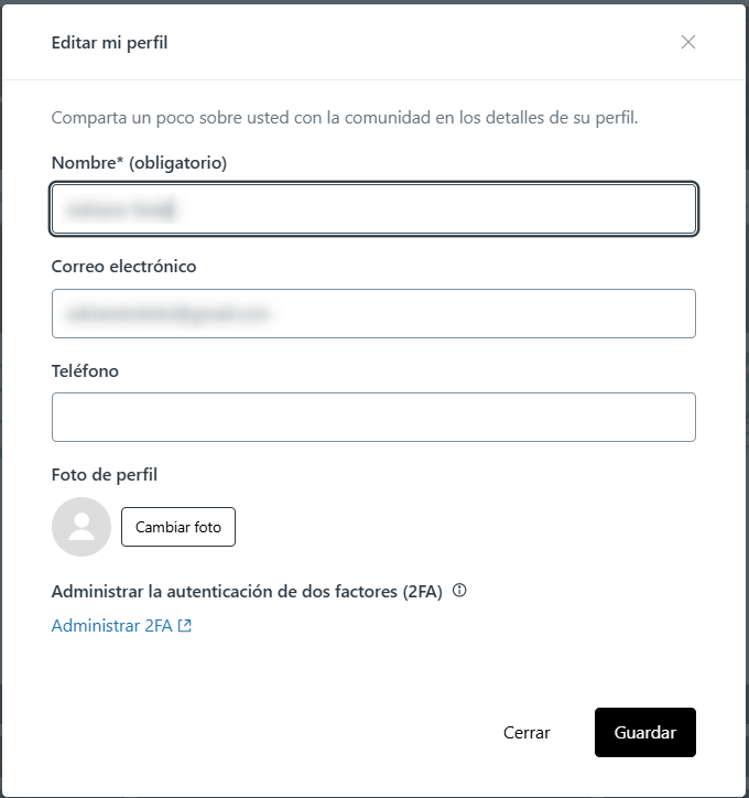 - Al cambiar los campos Correo electrónico y Teléfono, el nuevo correo y/o teléfono será añadido a su registro, y el soporte podrá visualizar todos sus contactos. Sin embargo, el primer correo electrónico y teléfono registrados serán considerados sus contactos principales;
