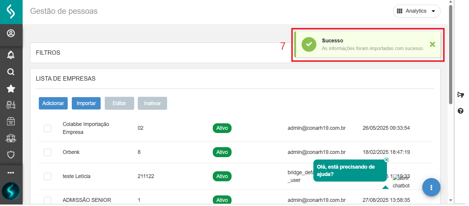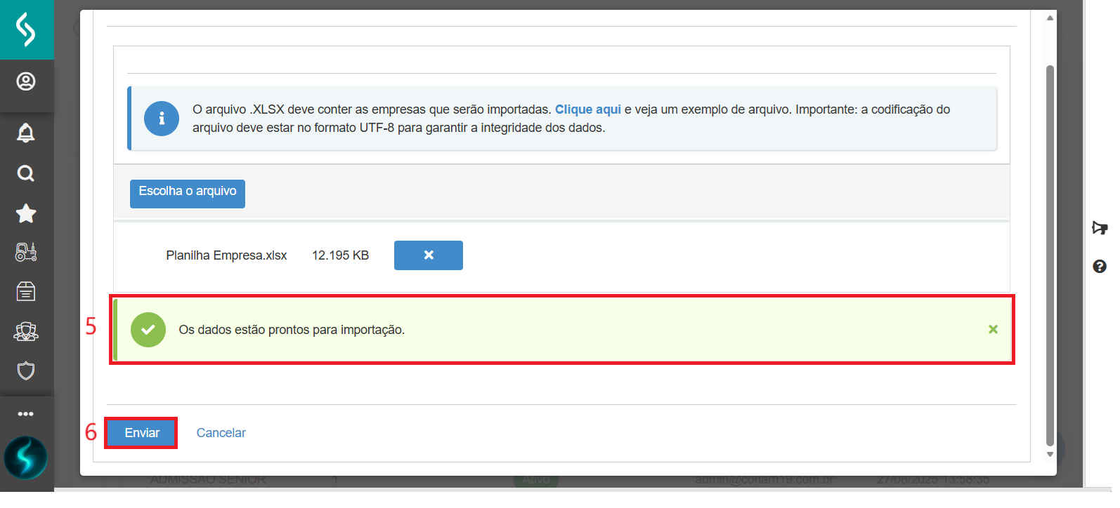 - Será mostrada a mensagem As informações foram importadas com sucesso.
