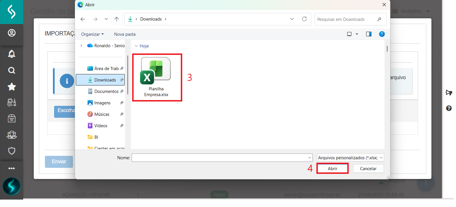 - Selecione o arquivo (Planilha);