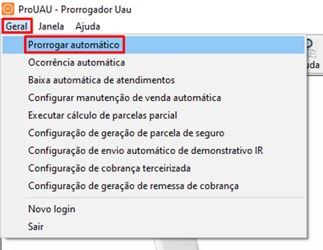 1. Acesse o módulo ProUAU / Clique em Geral / Prorrogar automático: