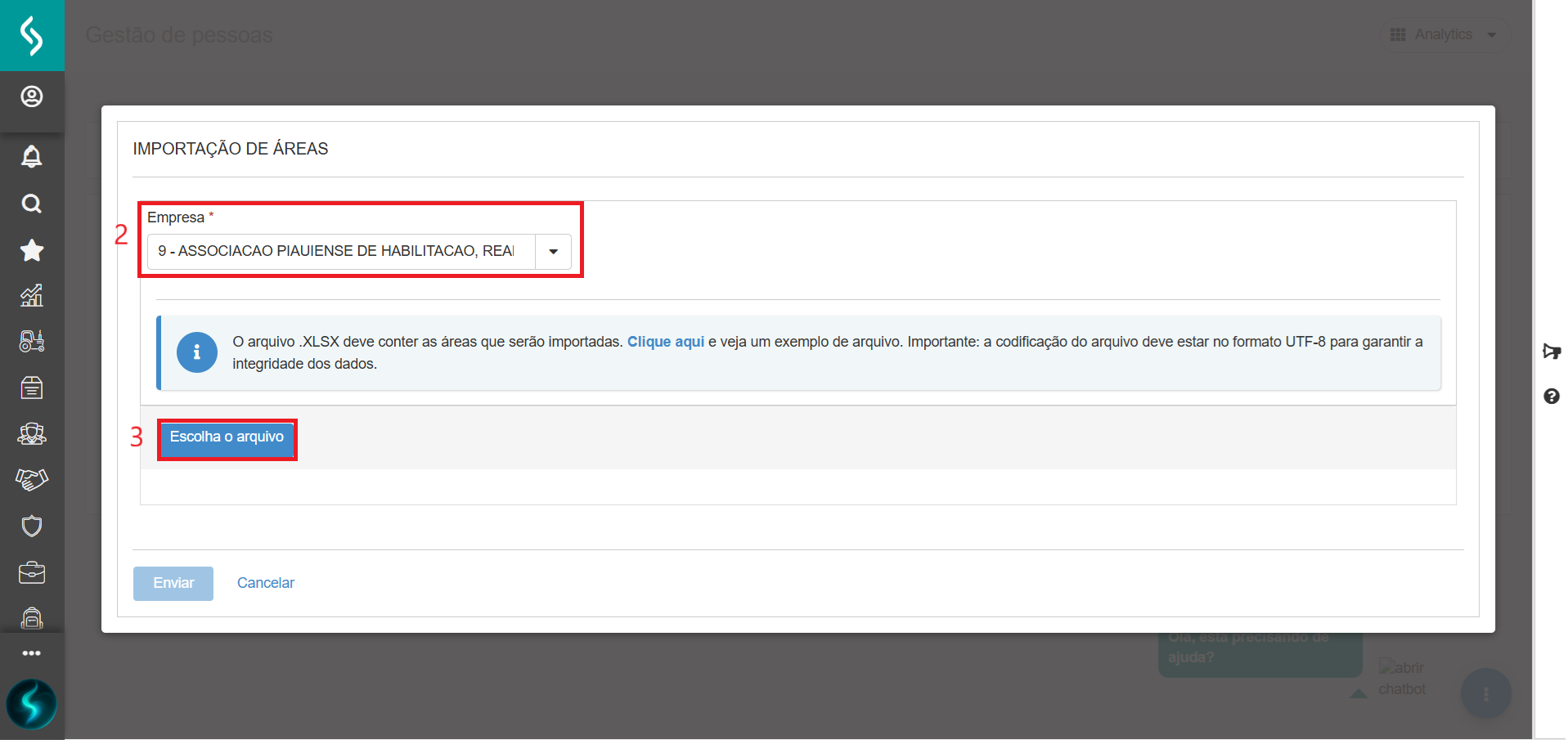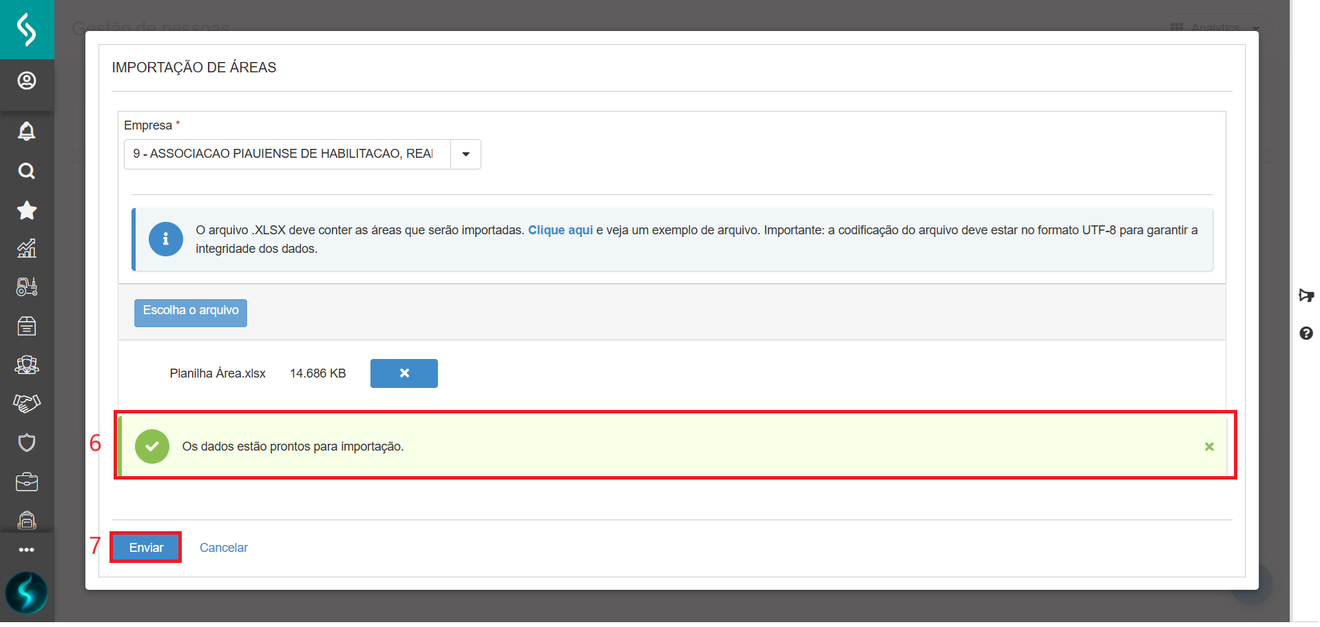 Com a planilha pronta, clique no menu: Gestão de Pessoas | HCM > Admissão digital > Cadastros > Áreas: