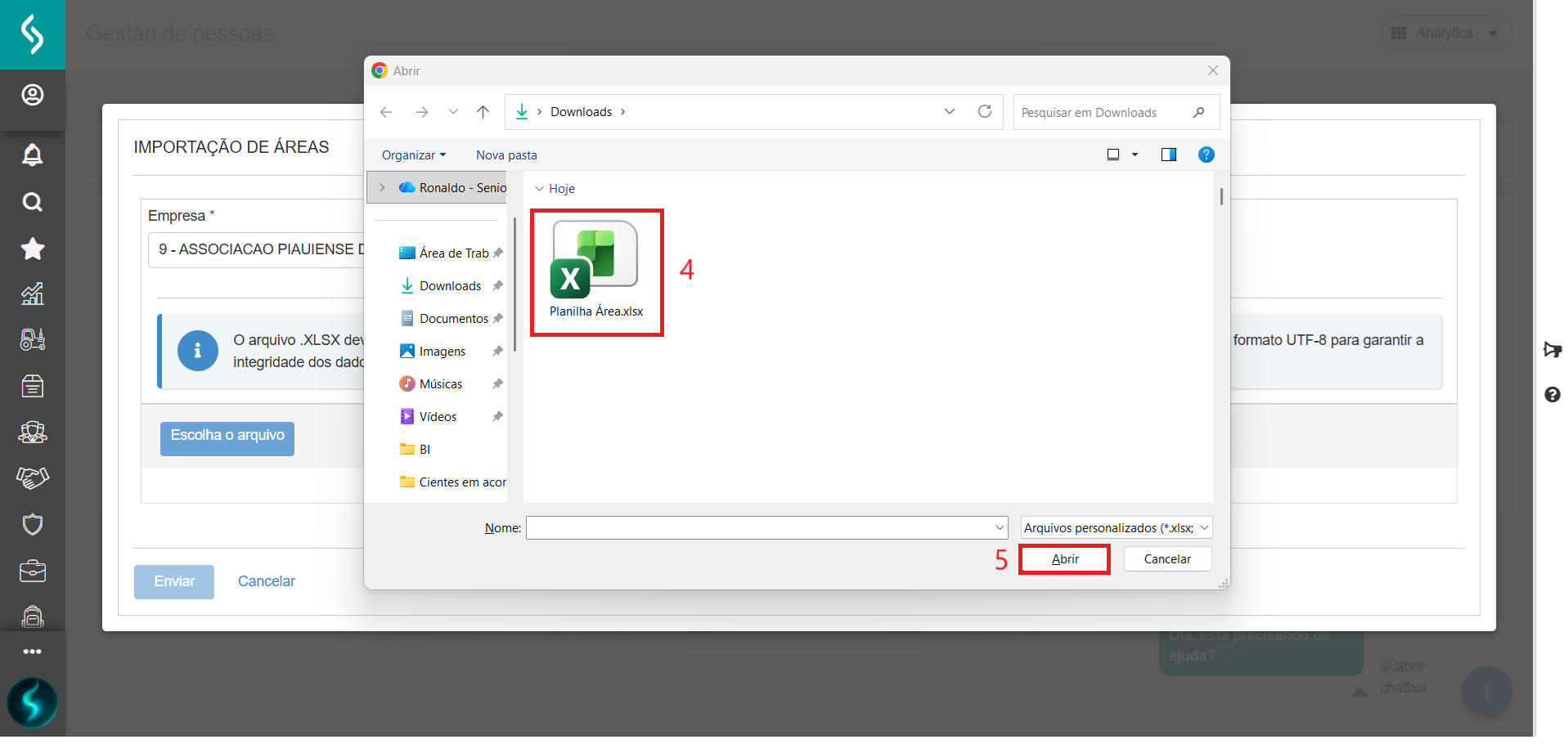 - Selecione o arquivo (Planilha);