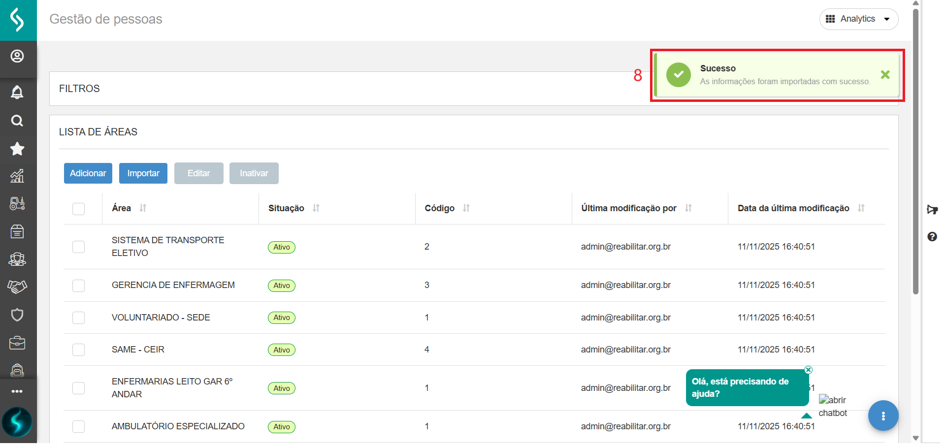 - Será mostrada a mensagem As informações foram importadas com sucesso.