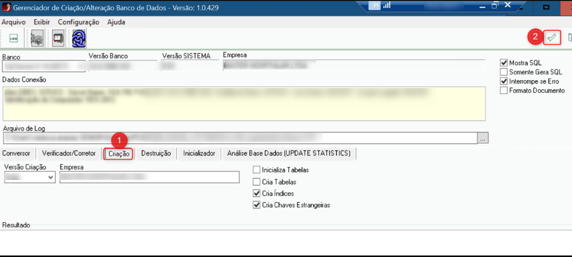 Não é necessário alterar nenhum campo como versão/criação, ou flegar alguma das opções. Somente clique em executar da forma que será apresentado: