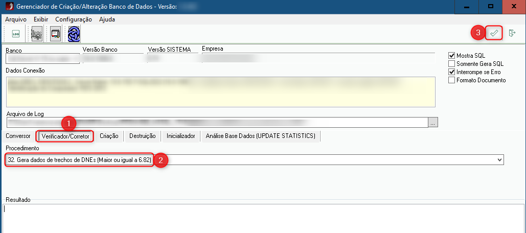 2-Selecione o PROCEDIMENTO 32 – Gera dados de trechos de DNEs (versão 6.82+), e clique no check para executar o mesmo: