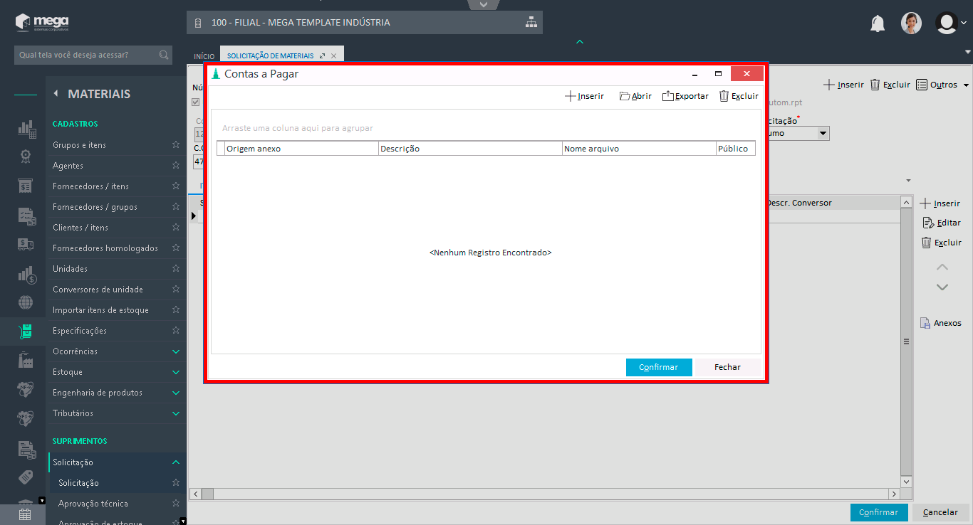 ERP MEGA - Solicitação - Como anexar arquivos no(s) item(s) de uma solicitação