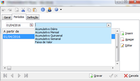3. Na aba Períodos, selecione uma das opções abaixo:
