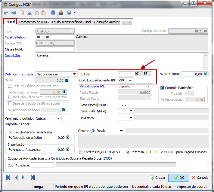 ERP MEGA - Recebimento - Como configurar para que o código do Enquadramento IPI seja informado automaticamente