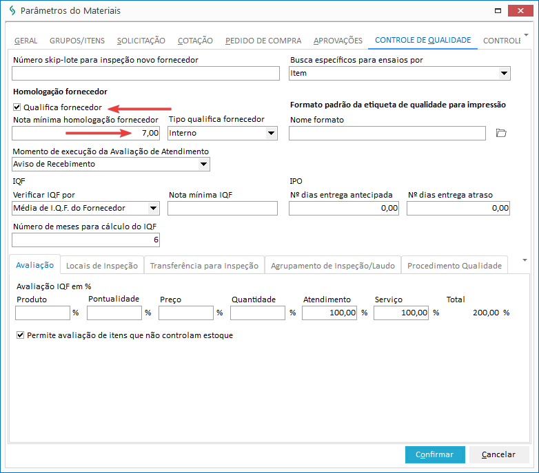 ERP MEGA - Controle de Qualidade - Como definir a nota mínima de homologação para fornecedores