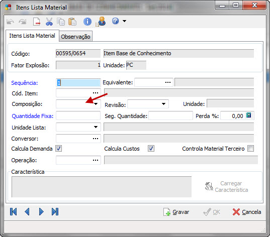 Para que seja possível inserir a lista de materiais, realize os passos a seguir: