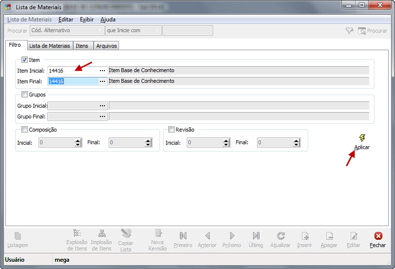 ERP MEGA - Lista de Materiais - É obrigatório informar valor para o campo COM_CPS_IN_CODIGO da tabela Itens Lista Material