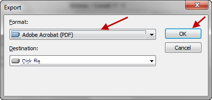 5. Na tela Export, em Format selecione a opção Adobe Acrobat(PDF), clique em OK: