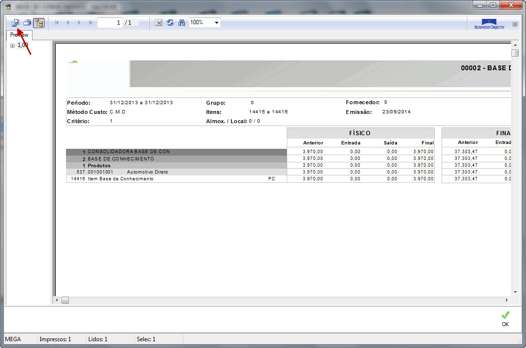ERP MEGA - Como exportar um relatório para PDF na visualização de relatórios com Crystal_XI