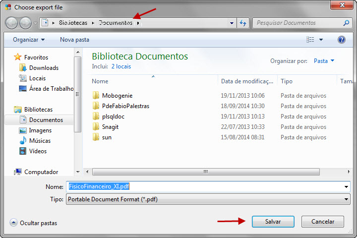 7. Selecione o local aonde será gravado o arquivo exportado em PDF do relatório, clique em Salvar: