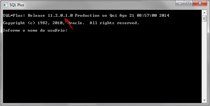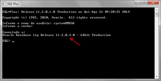4. Digite a senha do usuário system, em seguida será apresentada a versão do banco de dados: