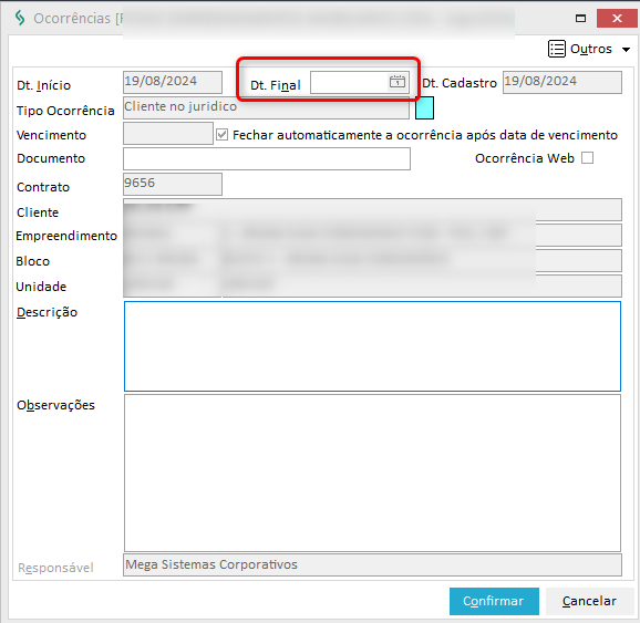 ERP MEGA - Ocorrências - Como tirar um cliente do jurídico
