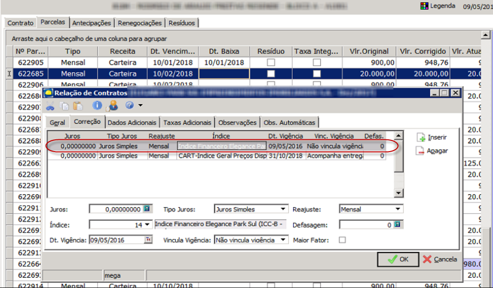 3. Na grid, selecione os índices que compõe as parcelas do contrato, anotado no passo 1: