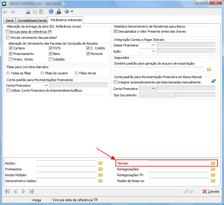 2. Clique na aba Parâmetros Adicionais e vincule no campo 'Termos' o formato 'R_CAR_Resumo_Termo.rpt':