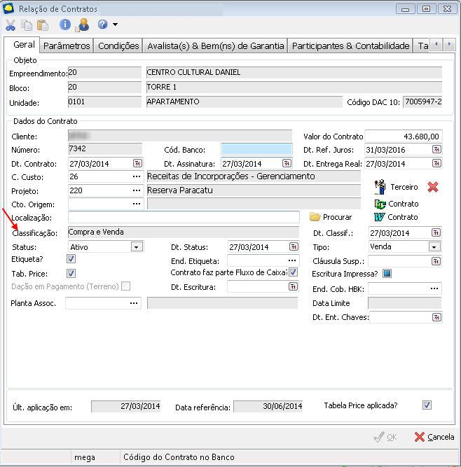 2. Na aba Geral, verifique a informação do campo Classificação: