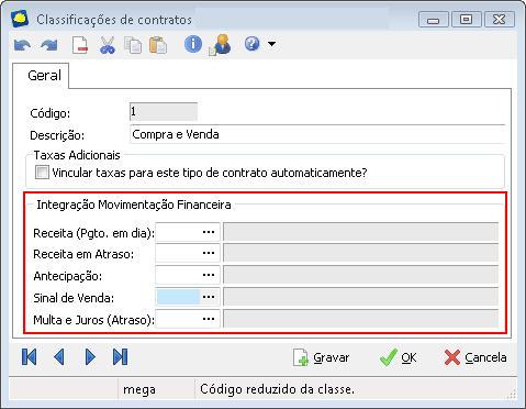 ERP MEGA - Movimentação Financeira de parcela Contratual: Atenção: É obrigatório informar valor para o campo CLA_IDE_ST_CODIGO da tabela Rateios