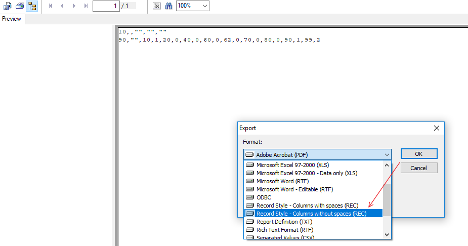 7. No campo Format, selecione a opção Record Style - Columns without spaces (REC);