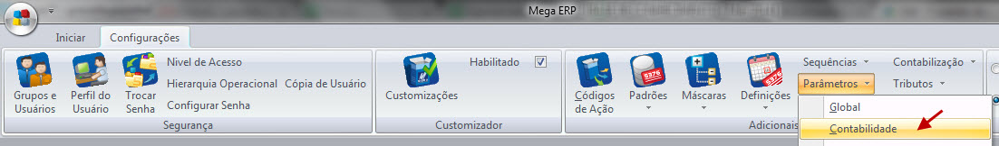 3. Acesse o módulo Global / Configurações / Parâmetros / Contabilidade: