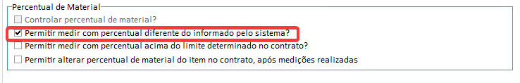 4. Desmarque o parâmetro: "Permitir medir com percentual diferente do informado pelo sistema ?":