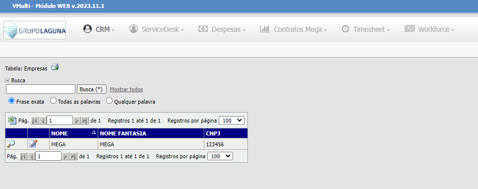 3.1 Em versões mais novas do Portal da Multidados no caminho: CRM / Parametrizações/ Empresas: