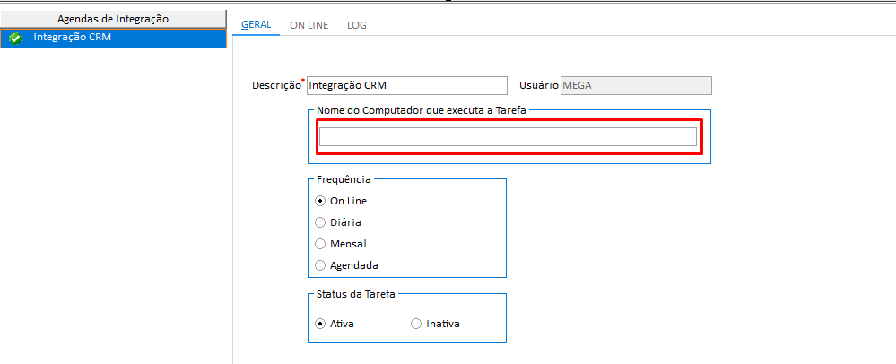 ERP MEGA - CRM - Integração agendada não está sendo iniciada