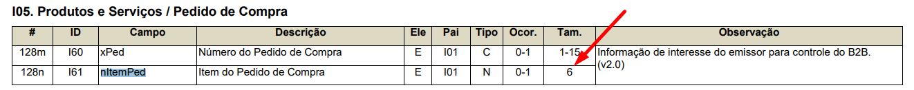 5. Verifique quantos caracteres possui o código informado no campo Cód. Item no Cliente e, seguindo as diretrizes do manual do contribuinte, certifique-se de que este campo não contenha mais de 6 caracteres: