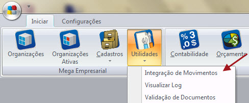 1. Acesse o módulo Global / Iniciar/ Utilidades/ Integração de Movimentos: