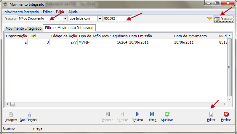 2. Filtre o documento, clique em procurar e em seguida em editar:
