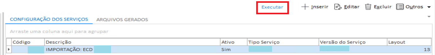 14. Selecione o serviço responsável pela execução da ECD e clique em Executar;
