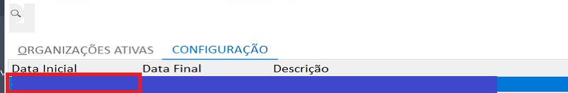 3. Em Organizações Ativas, selecione a Filial e Clique na aba Configuração;