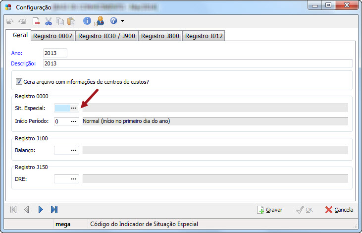 ERP MEGA - Sped Contábil - Registro 0000 – IND_SIT_INI_PER - Campo obrigatório não preenchido