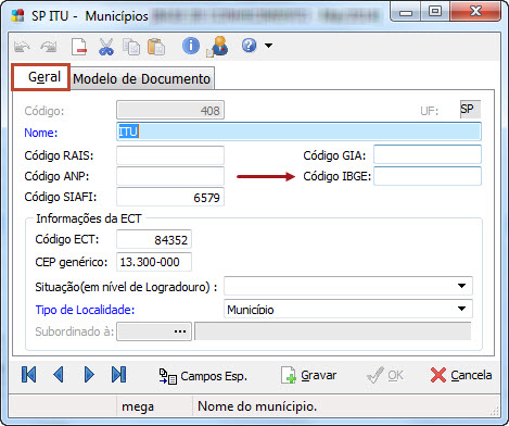 ERP MEGA - Registro 0000 – COD_MUN - Código IBGE inválido