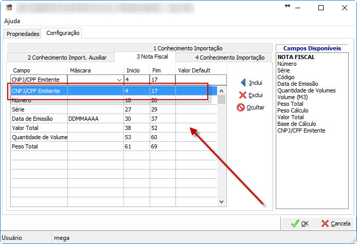 ERP MEGA - Importação de EDI de CONEMB 5.0: Nota Fiscal não cadastrada - NF XX/S - CTRC XX/T - Linha não Importada