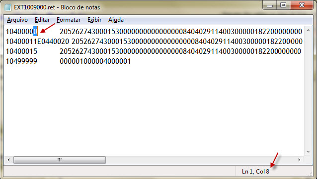 4. Abra o arquivo de extrato disponibilizado pelo banco, na primeira linha localize a coluna identificada no passo 3;