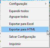 1. Clique com o botão direito sobre a grid e selecione a opção Exportar para HTML;