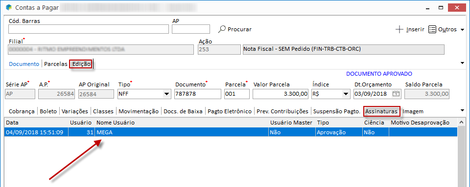 ERP MEGA - Contas a Pagar - Como identificar os usuários responsáveis pela aprovação de uma AP