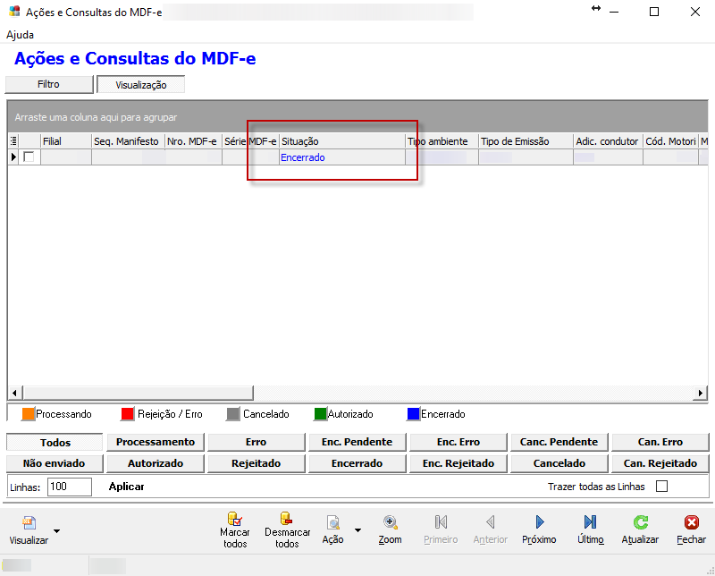 3. Clique em Aplicar e verifique a Situação do MDF-e: