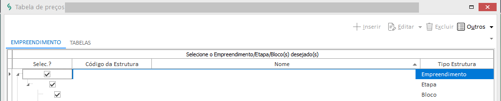 2. Selecione o Empreendimento/Etapa/Bloco(s) desejado(s):