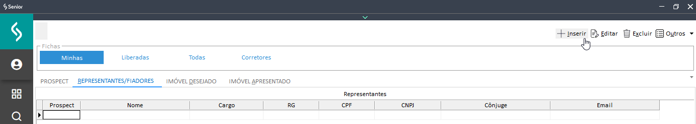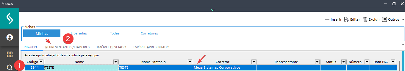 2. Selecione o prospect em questão e clique na aba Representantes/Fiadores: