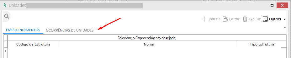 3. Na aba Ocorrências de Unidades, clique em Inserir: