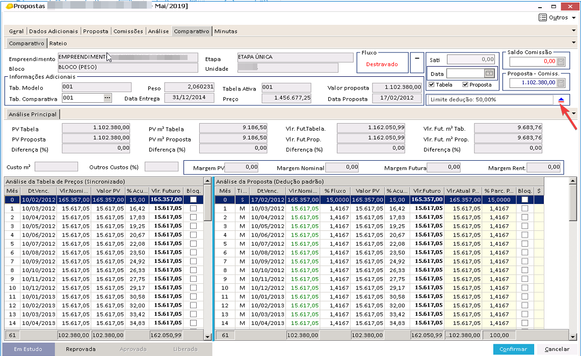 3. Na aba Comparativo, altere a Regra de Desconto que contemple as parcelas necessárias:
