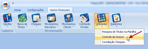 1. Acesse o módulo Global / Gestor Financeiro / Utilidades / Controle de Acesso: