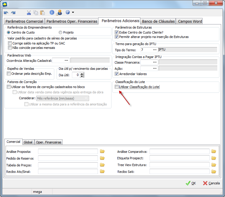 - Na aba Parâmetros Adicionais, desmarque a opção 'Utilizar classificação do Lote', para que a estrutura seja criada com o tipo unidade: